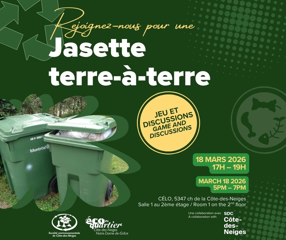 The next activity will take the form of a 5 à 7 to mark Global Recycling Day on Wednesday, March 18th, and will take place at the Célo community centre […]